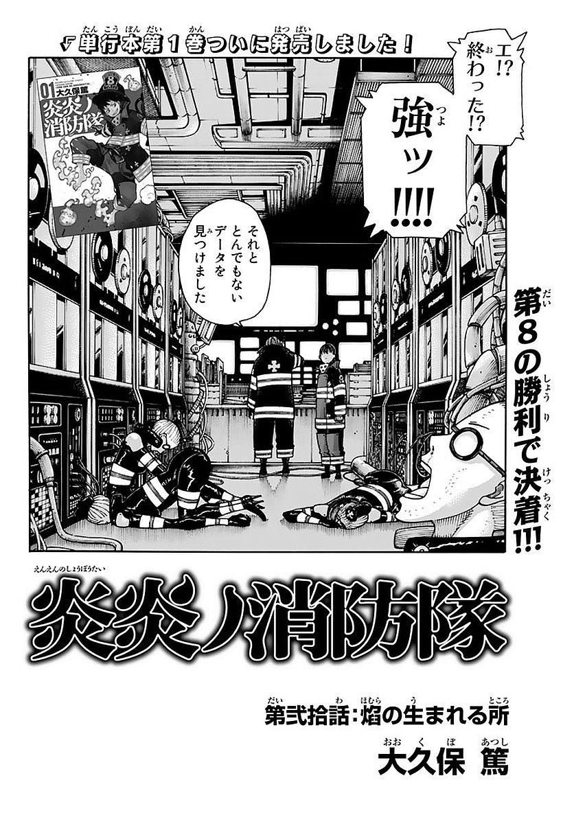 Where the Inferno is Born (焔の生まれる所, Homora no Umareru Tokoro) is the twentieth chapter of the Fire Force manga series.