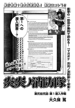 Operation: Infiltrate Company 1 (第1潜入作戦, Dai Ichi Sen'nyū Sakusen) is the twenty-second chapter of the Fire Force manga series.