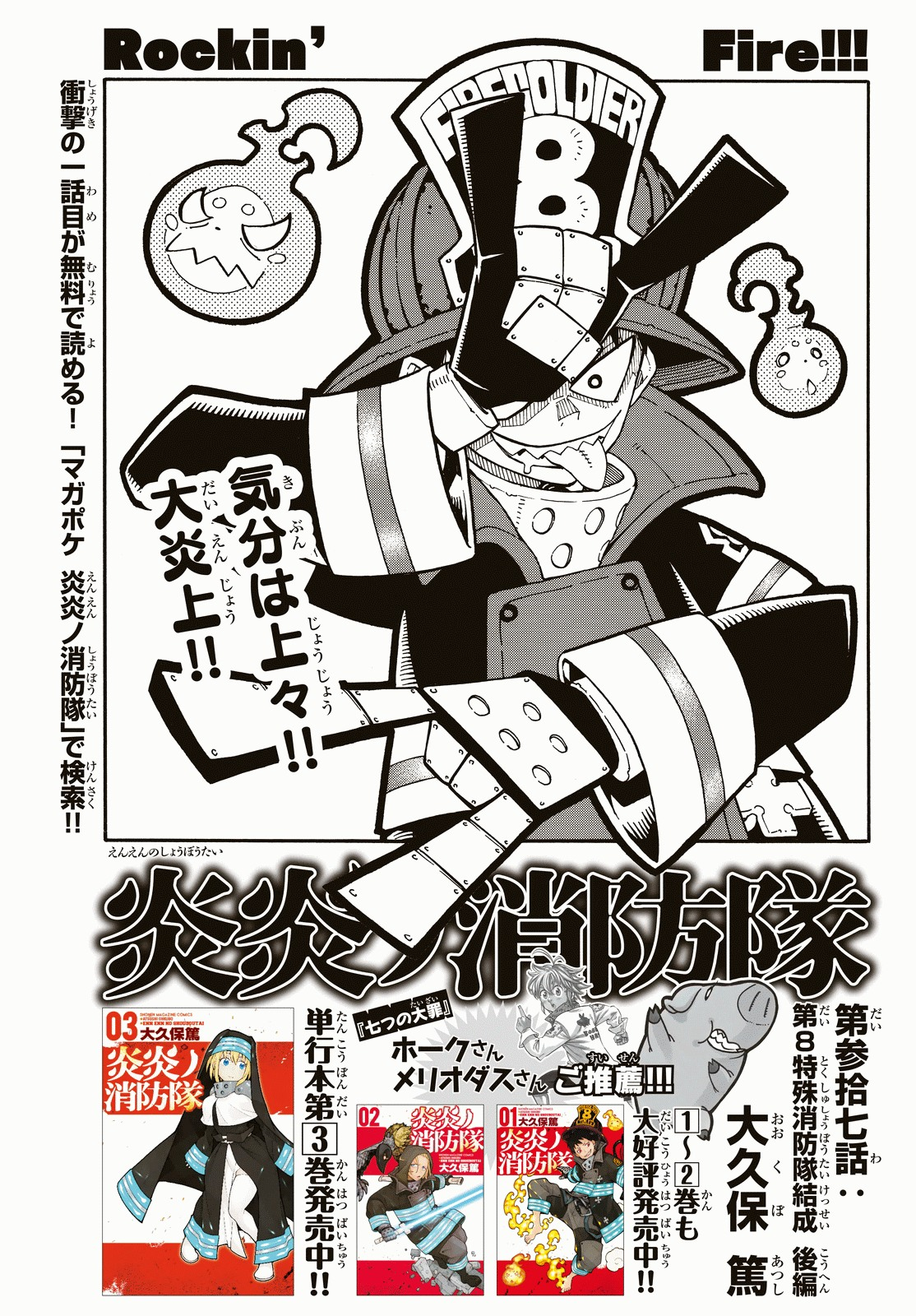 The Origins of Fire Force Company 8 — Part Two (第8特殊消防隊結成 後編, Dai Hachi Tokushu Shōbōtai Kessei Kōhen) is the thirty-seventh chapter of the Fire Force manga series.